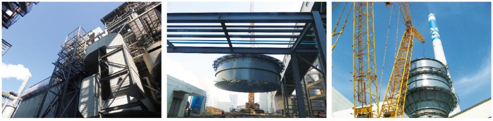 該工程施工場地緊張,國能中電采取濕式靜電除塵器和脫硫塔垂直分布的一體化設(shè)計,將濕式靜電除塵器安裝在脫硫塔上方,節(jié)約了施工場地。